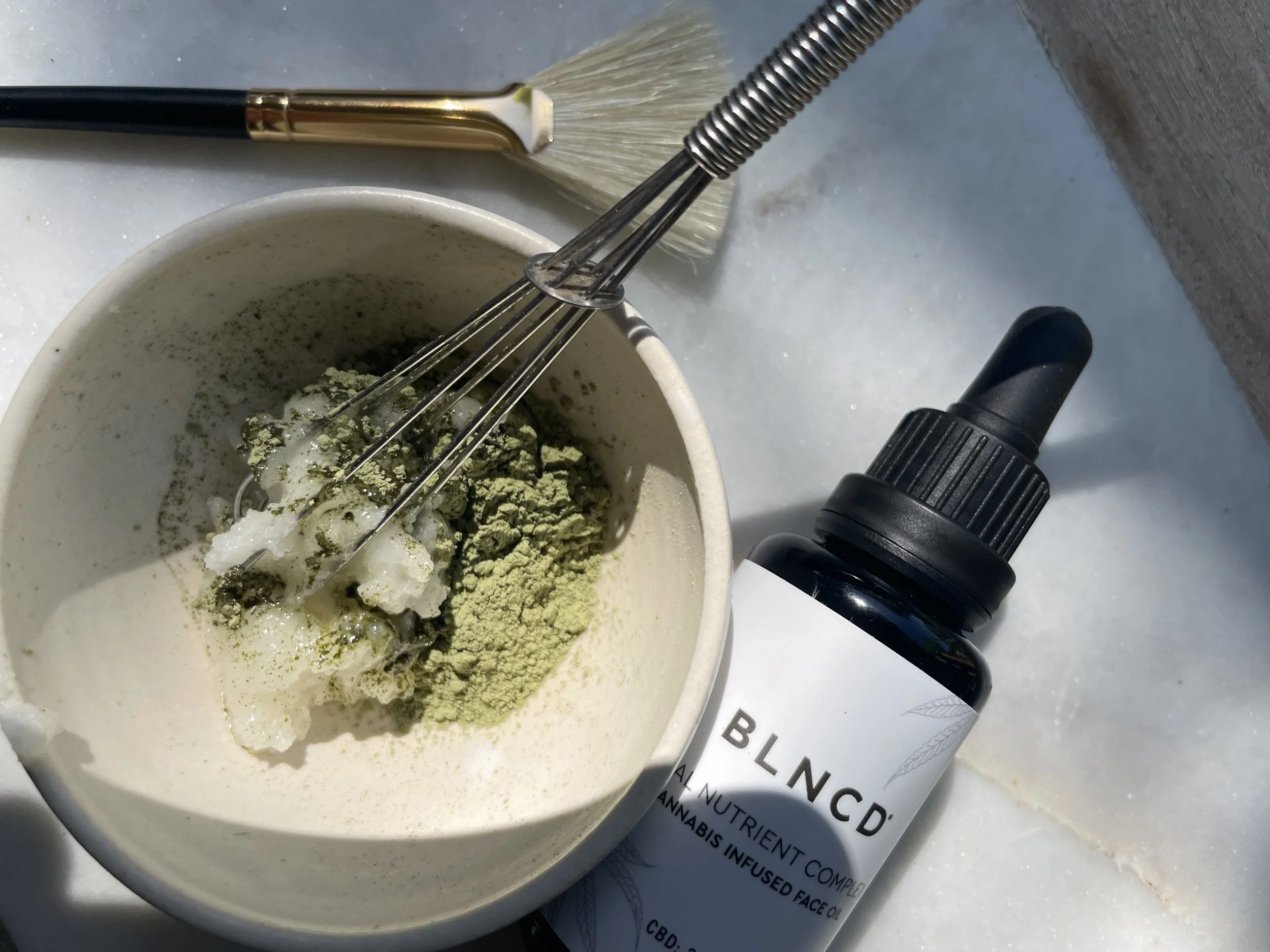 · Mix 1 tablespoon matcha powder with 1 teaspoon coconut oil in a small bowl with a whisk or small spoon. Once mixed, add 1 ½ dropper of the BLNCD Vital Nutrient Complex CBD Face Oil and gently stir all ingredients. Let sit for a few minutes to combine naturally.