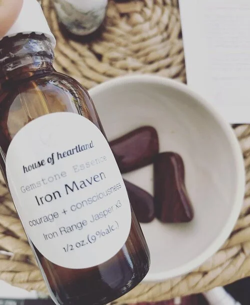 That evening, we went down to the lake shore and filled two gallon jugs with cold, fresh water from Lake Superior. And, of course, immediately upon return to the cabin I excitedly lit the wood sauna with firewood and waited for the heat. Gathering my self-care tools, began a lymphatic clearing dry brush session while standing naked in a cabin where no one could see. Freedom. Following the dry brushing, I slathered on my Gold Moss Body oil for a quick self massage before grabbing my towel and eucalyptus oil and heading out to the sauna. But not before a couple drops of Iron Maven under my tongue. Similar to a flower remedy, Crystal tinctures are vibrational remedies. Since Iron Maven hold energy of jasper from the Iron Range, I thought it fitting to boost my experience.